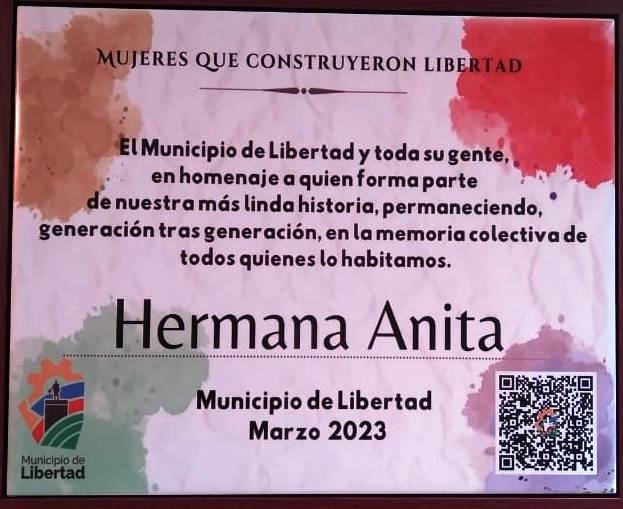 En marco de #DiaDeLaMujer, el @municipiodelibertad y @san_jose_intendencia realizaron una convocatoria abierta a la población denominada “Mujeres que Construyeron Libertad”, y en donde la población eligió a 8 mujeres, que fueron parte de la construcción de nuestra comunidad. Una de las elegidas fue la Hna. Anita. Hijas de la Cruz
